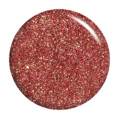 Ruby red. Metallic foil sparkle. Opaque. Cool undertone.